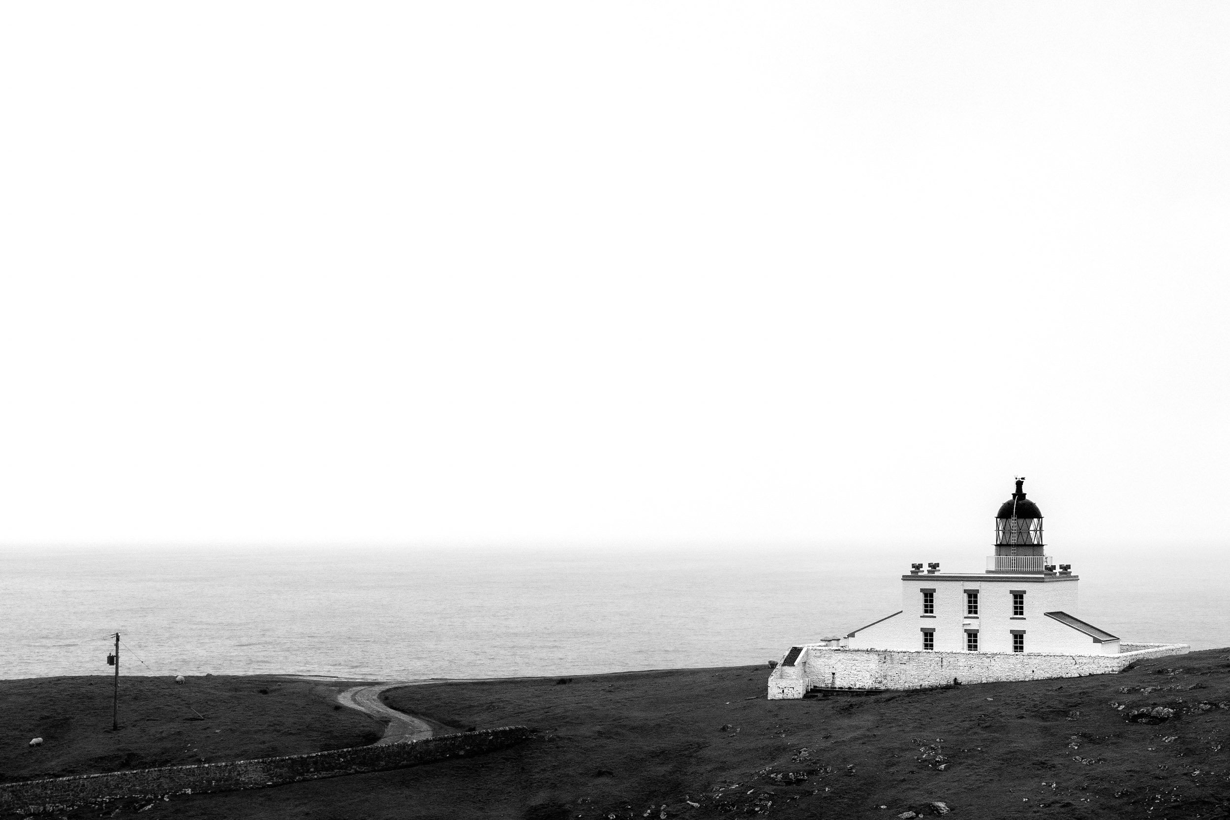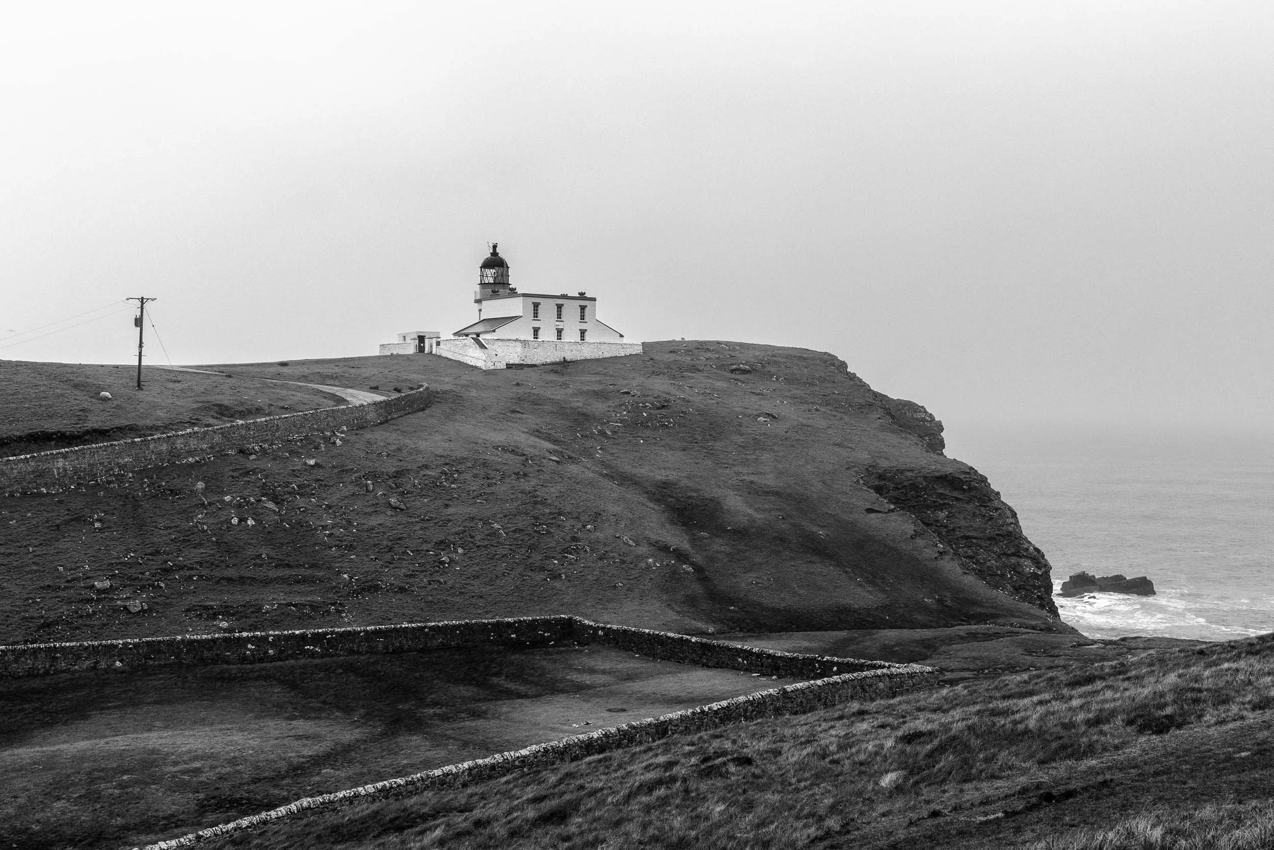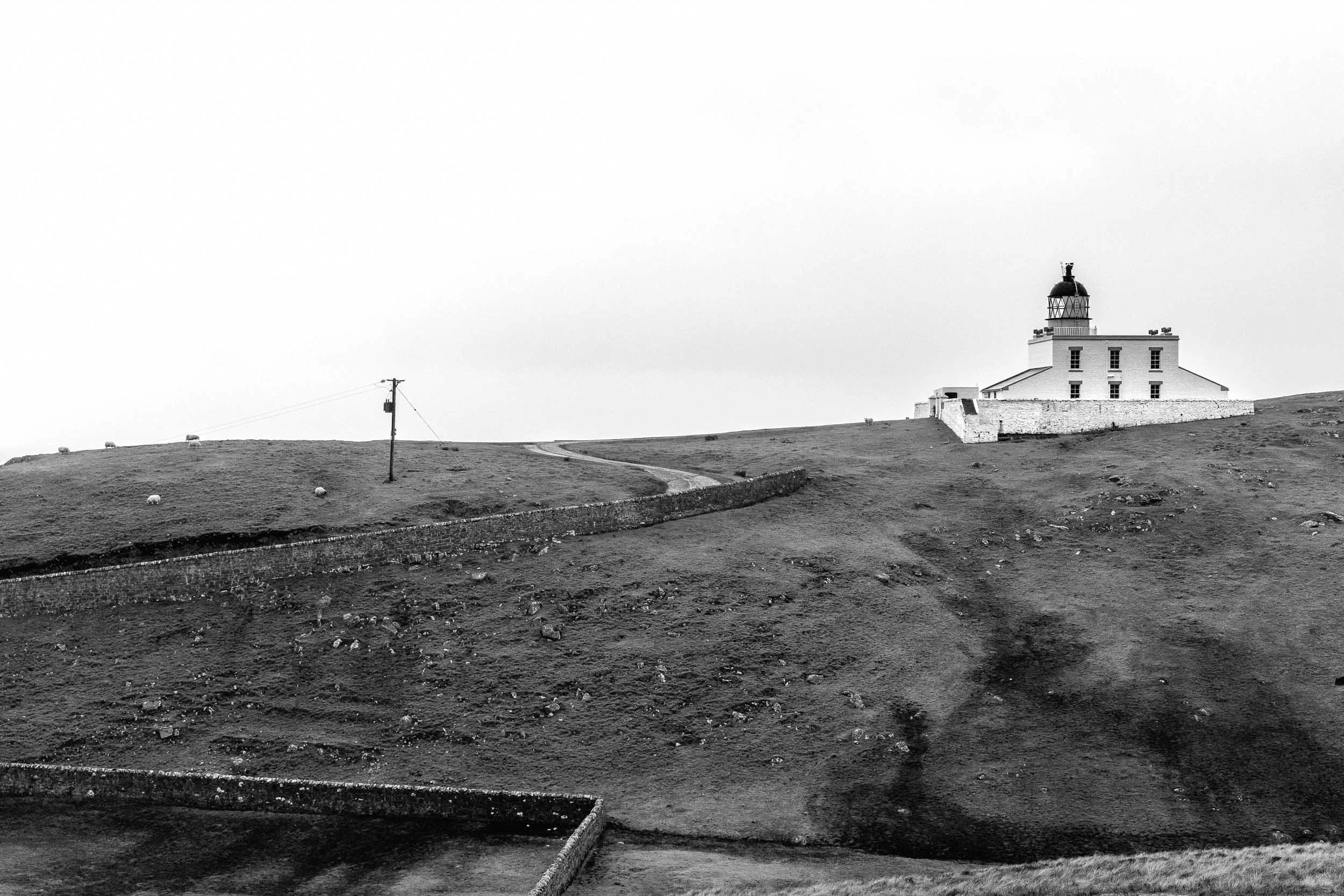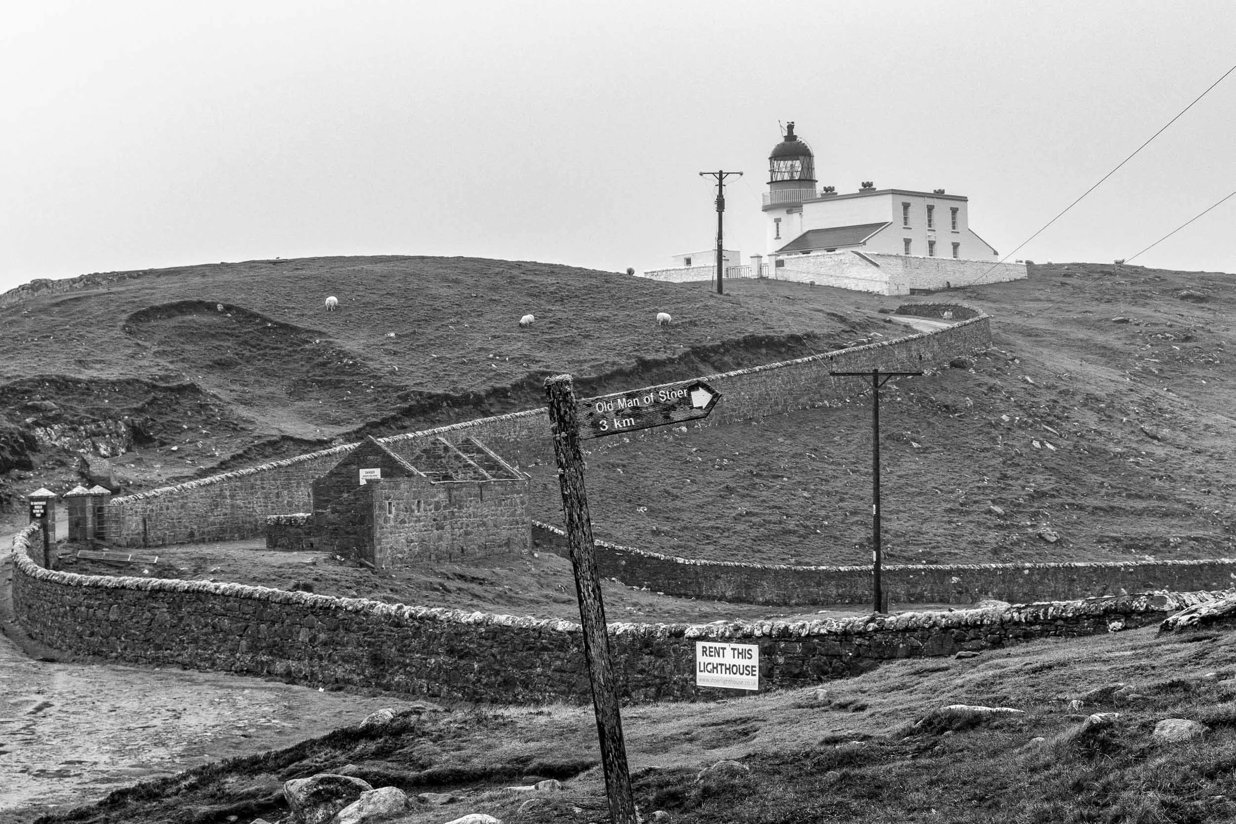 We scouted a few other locations along the coast and ended up at Stoer Head, which neither of us had previously visited. Arriving in a heavy squally shower, it seemed a good time to have lunch. I parked the car so we could look out to sea but needn’t have bothered as the combination of heavy rain and steamed up windows from our flasks of soup obliterated the view. When the soup had been consumed and the rain had eased off, we squelched our way up the hill so that we could look across to the lighthouse.